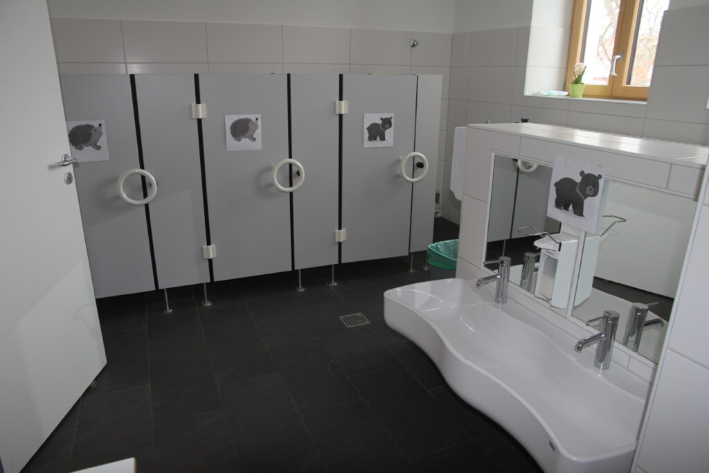 Unsere Ganztagsgruppen und der Hort sind Montag bis Freitag 10 Stunden geöffnet. Wir stehen Ihnen bis 16.00 Uhr täglich zur Verfügung. Die Krippengruppen bieten eine tägliche Öffnungszeit bis 14.00 Uhr oder 16.00 Uhr an. Bei den Öffnungszeiten der verlängerten Vormittagsgruppen war es uns wichtig, einen großen Rahmen auch für TeilzeitarbeitnehmerInnen zu schaffen. Egal, welche Gruppen Sie wählen, 6 ½ Stunden täglich sind wir für Ihre Kinder da. Außerdem ist es uns ein Anliegen, Ihnen ein möglichst ganzjähriges Betreuungsangebot anbieten zu können. In den letzten Jahren lagen wir mit unseren maximal 24 Werktagen, an denen unsere Einrichtung geschlossen war (hauptsächlich in den Weihnachtsferien und 14 Tage im Sommer), mit an der Spitze im Raum Augsburg. Für Ihre eigene Planung informieren wir Sie über die genauen Daten immer zu Anfang des Kindergartenjahres. Dies soll so bleiben. Als Bestandteil der Hammerschmiede sind wir uns der tiefen Verwurzelung mit der Gemeinde bewusst. Das Feiern christlicher Feste und das Pflegen von Traditionen schafft einen Raum, der uns verbindet. In unserer unmittelbaren Umgebung finden Sie die Grundschule der Hammerschmiede. Neben einer intensiven Zusammenarbeit mit den Lehrkräften schaffen wir durch Besuche eine Basis der Vertrautheit der künftigen Schulkinder mit der Schule selbst. Da der Weg zu unserer Einrichtung der gleiche ist wie der Schulweg, bringt dies Sicherheit für Ihr Kind. Außerdem haben wir durch die naheliegende Bushaltestelle eine direkte Anbindung zur Innenstadt. Dies nützen wir unter anderem auch für Ausflüge. Selbstverständlich haben wir auch den Kontakt zu Beratungsstellen und anderen geschulten Fachpersonal, damit wir Sie und Ihr Kind optimal unterstützen können.